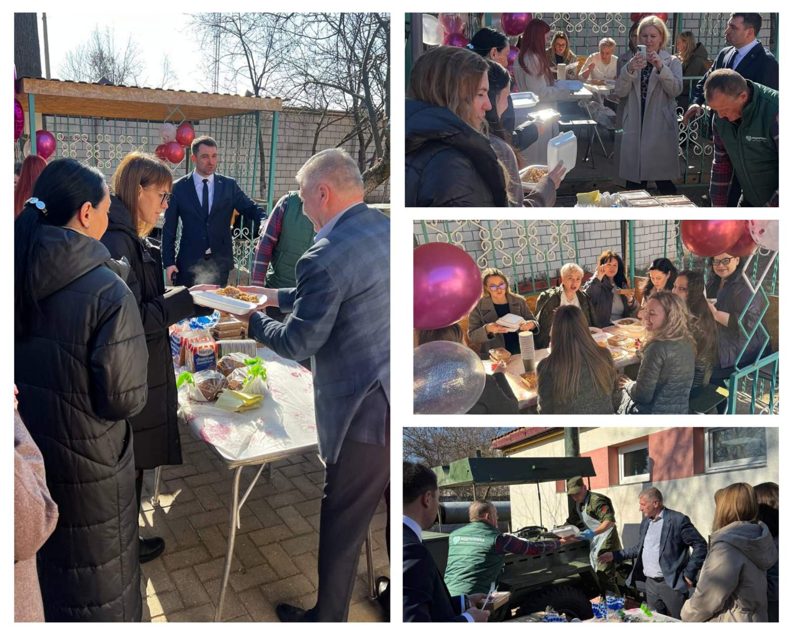 В канун Международного женского дня мужской коллектив РДТУП «Медтехника» г. Гомель поздравил коллег-женщин с наступающим праздником. Поздравления для прекрасной половины начались с приятных сюрпризов, улыбок, цветов и поздравлений. Прекрасная живая музыка, захватывающее световое шоу, и, конечно же, выездная полевая кухня, не оставили равнодушными ни одно женское сердце.